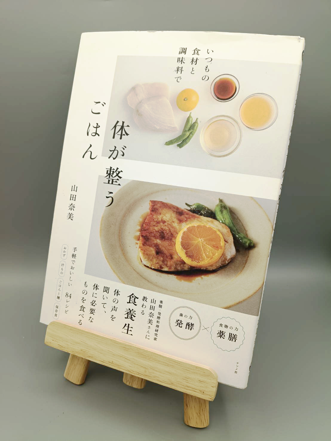 食材はスーパーで手に入る身近なもの、調味料は味噌や醤油、みりん、酢、塩麴など発酵食品を使った84のレシピを紹介しています。食材が持つ「薬膳」の効果と発酵調味料の「発酵」の相乗効果で、体が自然に整っていきます。和食だけでなく、洋食、中華、エスニックとバリエーションも豊富。レシピは7つのテーマ(「温める」「気を巡らす」「血を巡らす」「水を巡らす」「気を補う」「血を補う」「若さを保つ」)に分けて紹介。巻頭の体質チェックをしてからあてはまる料理を作ってもいいです。ナツメ社刊。